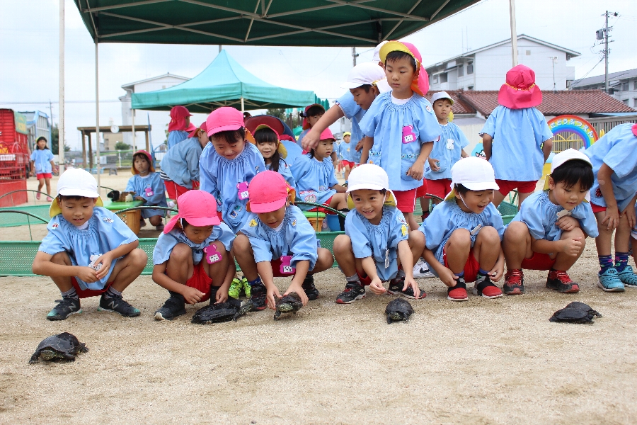 10月8日(火)、愛知学泉大学附属幼稚園の園庭にいちご動物園がやってきました!「上手に触れるかな~?」と最初はドキドキでしたが、動物園のお兄さんお姉さんのサポートのおかげですぐに動物たちと仲良くなった子どもたち。モルモットさんを優しくだっこする子、ヤギさんの角に興味津々の子、カメさんを競争させる子など、それぞれ楽しくふれあうことができました♪