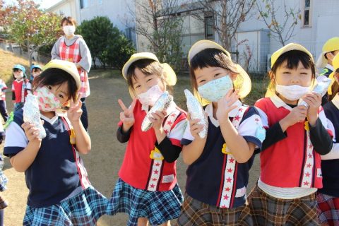 11月13日(金)、愛知学泉大学附属桜井幼稚園で焼きいもパーティーを行いました。お家から一人1つずつ持ってきたさつまいもを先生に渡して、子どもたちは火から少し離れた場所で「美味しくなーれ!」とパワーを送りながら焼きいもが出来るのを待ちます。焼きたてのさつまいもは甘くてほっくほくで、思わず笑顔になるほど美味しかったですね。