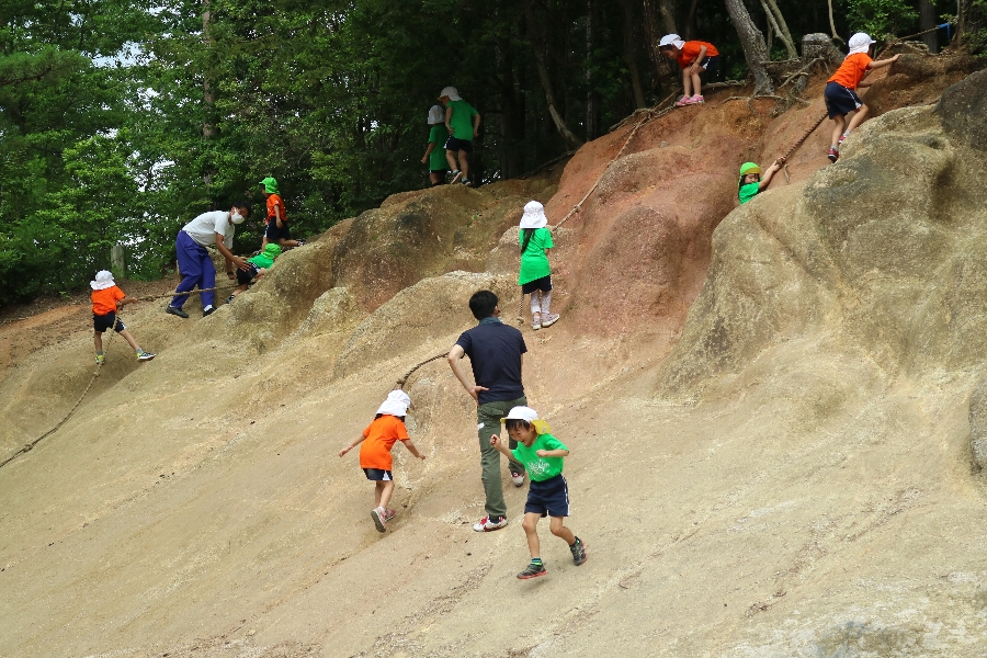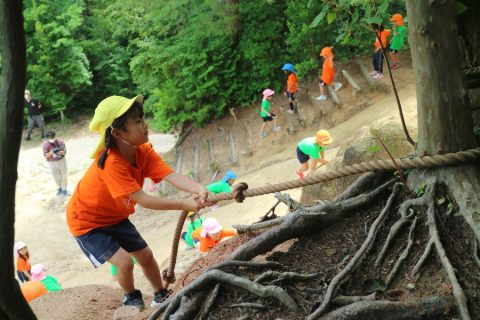 7月10日(土)~11日(日)、豊田市総合野外センターにて愛知学泉短期大学附属幼稚園年長クラスのサマーキャンプを行いました。連日の雨で当日の天候も心配されましたが、キャンプ初日は見事に晴れて自然の中で思う存分遊ぶことができました。アスレチックでは迷路やターザン、遊具を使ってお友達と楽しく遊んだ子どもたち。お家から持ってきたおにぎりも美味しくいただきました。