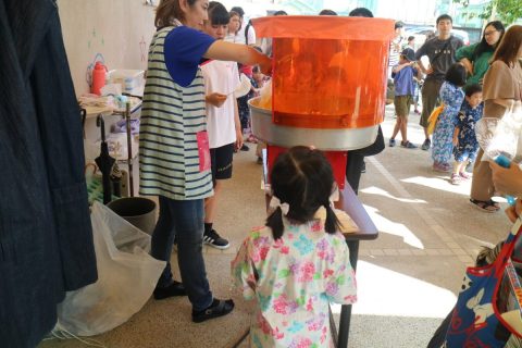 8月27日(日)、愛知学泉短期大学附属幼稚園で夏まつりを行いました。教育後援会役員、父の会のみなさまにご協力いただき、たくさんのゲームやおもちゃ、おやつを用意。まだまだ暑い中でしたが、たくさんの子どもたちが浴衣や甚平を着て集まってくれました。また、系列校の安城学園高校からも保育者を目指す生徒さんが、お手伝いに来てくれました。
