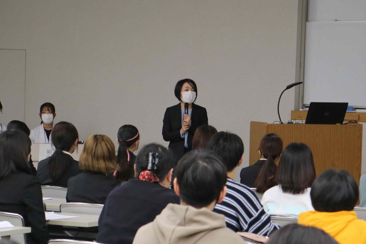52名の学生は管理栄養士に必要な疾病治療・予防、食育などに関する専門的知識・技能を発揮し、様々な調査・研究を実施。その成果を教職員と3年生に披露しました。学生たちは大勢の前での発表に緊張した様子でしたが、質疑応答にも落ち着いて答えることができました。コロナ禍の影響もあり、会場での3年生の聴講は4年ぶり。3年生は先輩の発表を見ることでこれから取り組む卒業研究について考え、学ぶ機会となりました。
