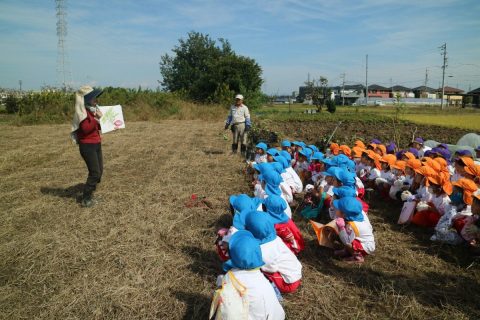 10月19日(木)には、年中さんが芋ほりに行ってきました。園のバスに乗って岡崎の畑へ。