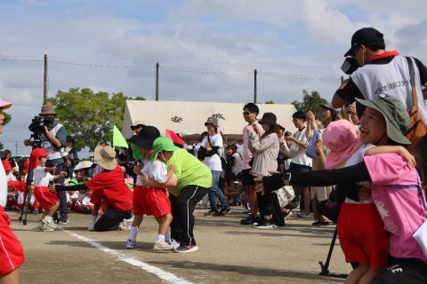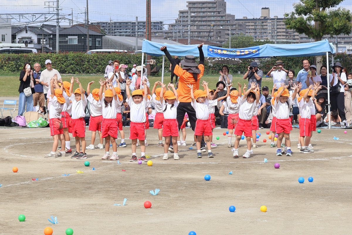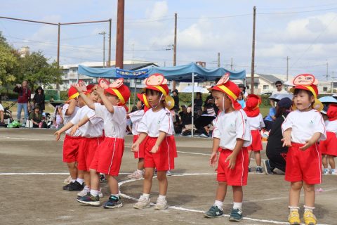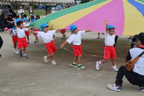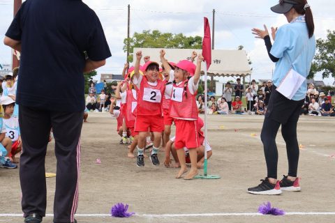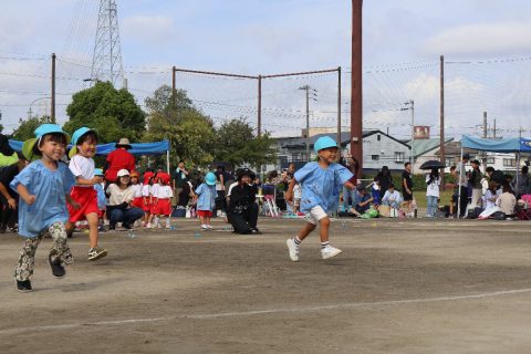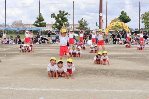 園児たちは、日頃の練習の成果を力いっぱい発揮。それぞれの競技や演技では、成長した姿や友だちとの絆がたくさん見られました。親子競技では、おうちの方と心を通わせながら楽しむ姿、年長さんは鼓笛や組体操、リレーに取り組み、園生活の集大成を披露。子どもたち一人ひとりの頑張りが輝いた運動会となりました。