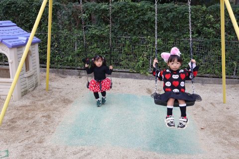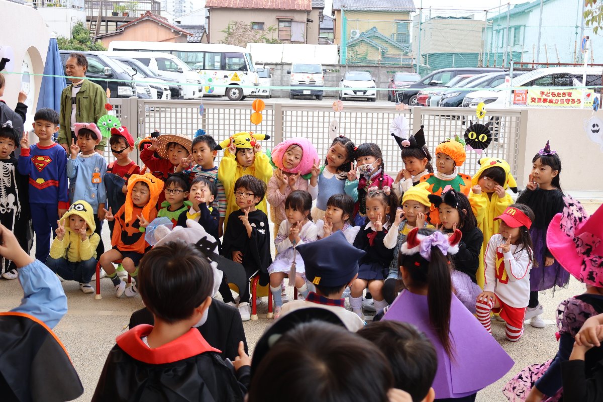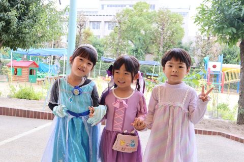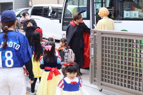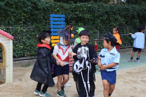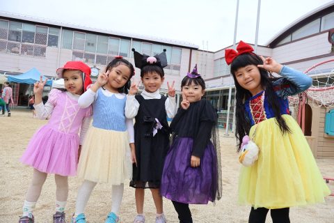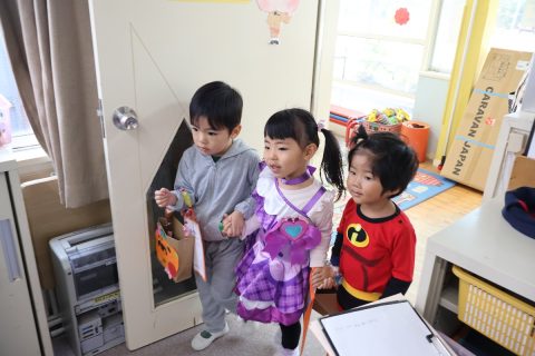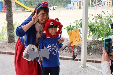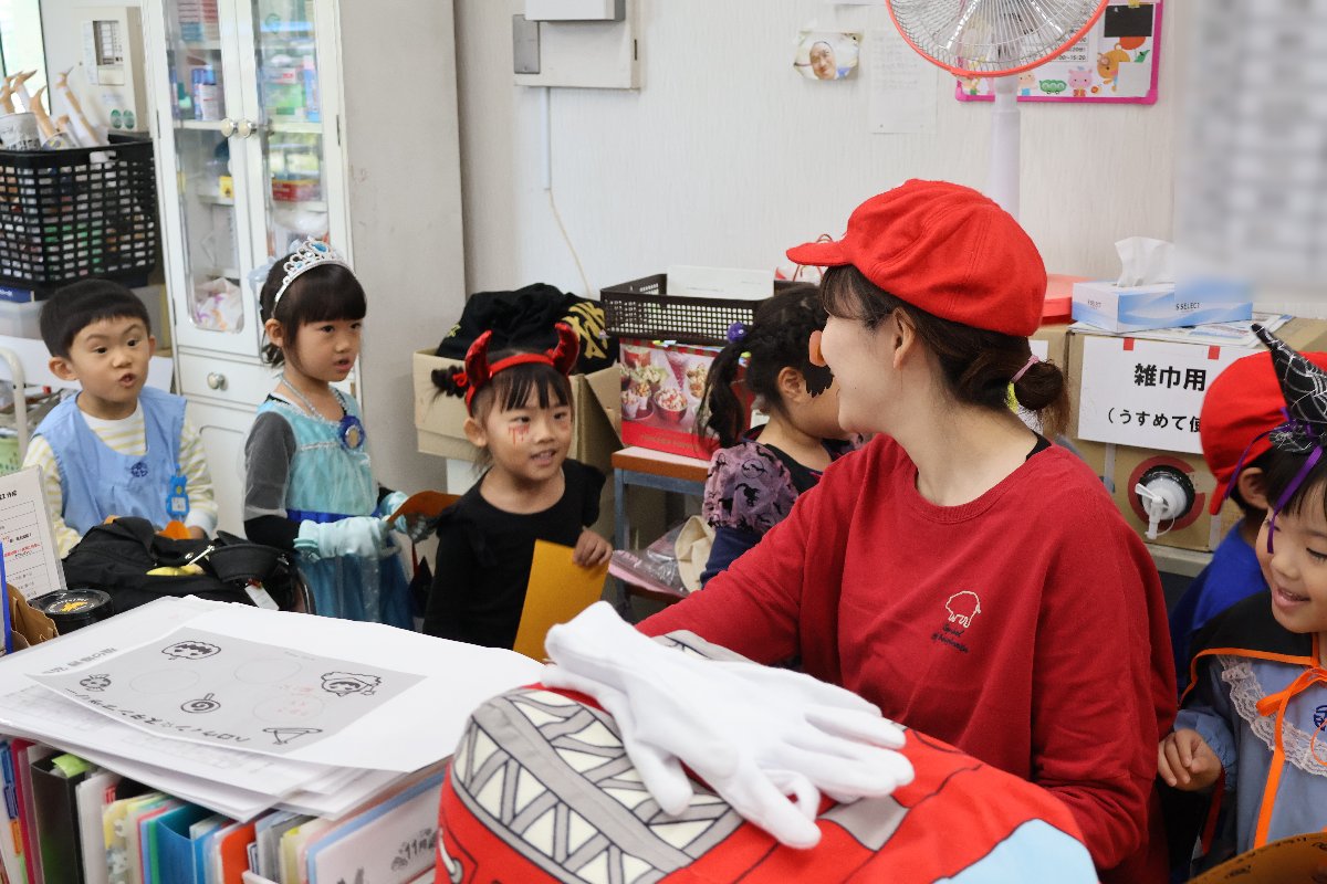 10月31日(金)、愛知学泉短期大学附属幼稚園でハロウィンパーティーが行われました。仮装登園OKなこの日、可愛いお姫様、かっこいいヒーロー、ちょっぴり怖いおばけなど、思い思いの仮装で登園する園児たちを先生たちも仮装でお出迎えしました。いつもの幼稚園が魔法にかけられたような、わくわくする空間に。みんなそろってからはカードを手に「トリックオアトリート」。先生方からスタンプやシールを押してもらいます。自分の手作りのカバンに、もらったお菓子を大事そうに入れる姿やかわいい笑顔がたくさん見られました。