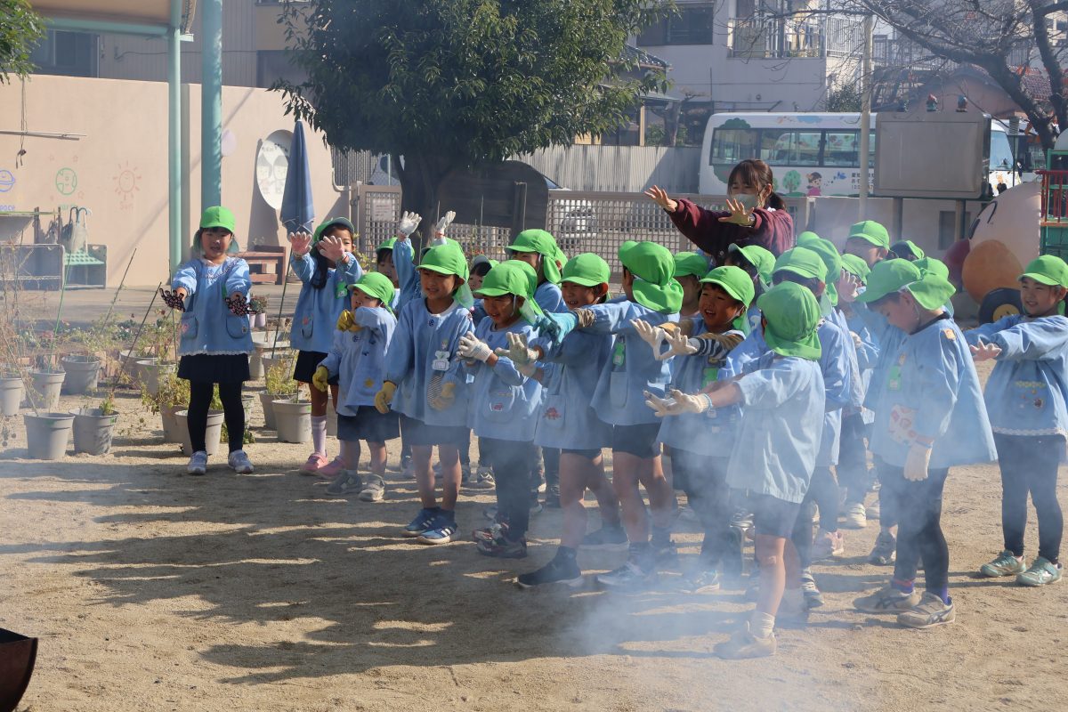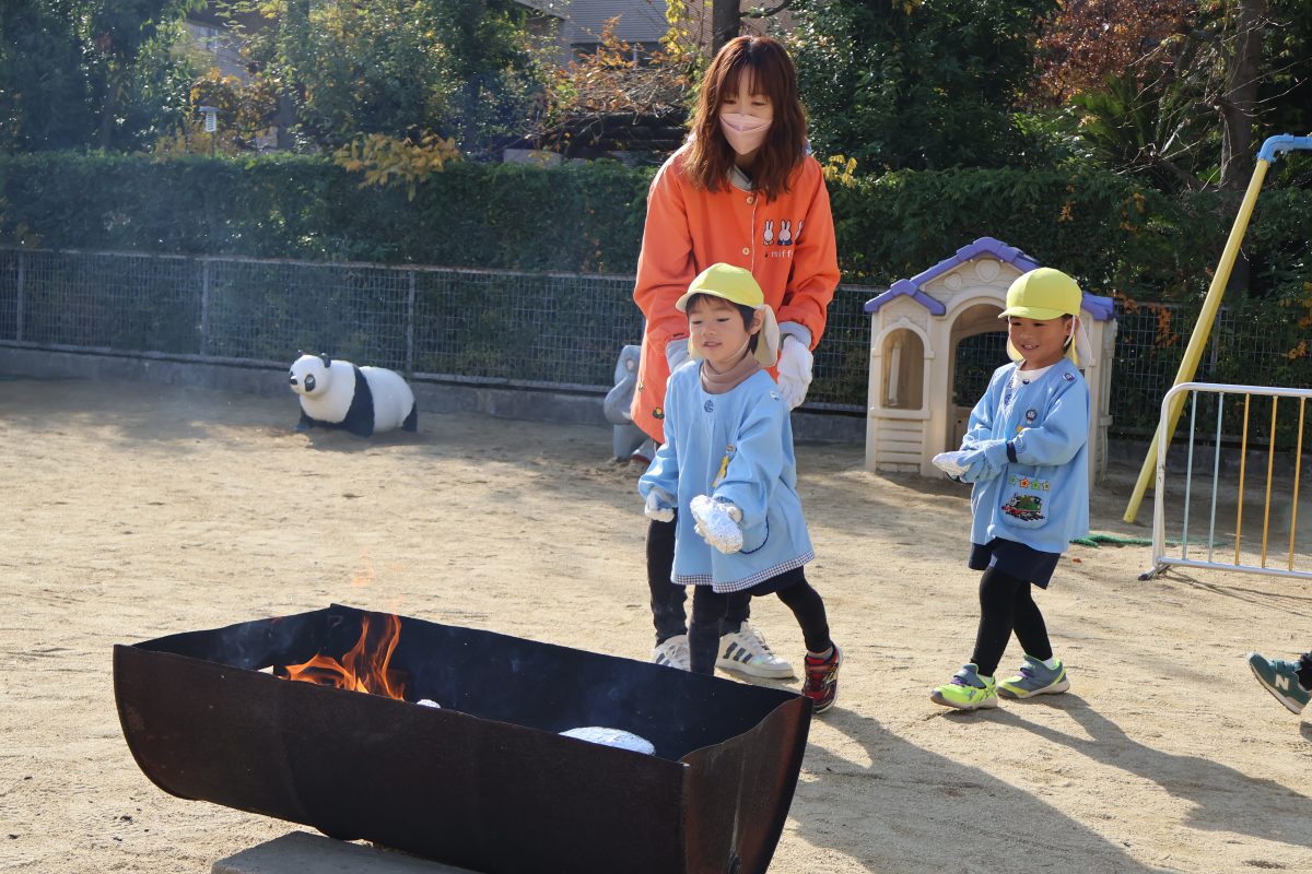 12月2日(火)、愛知学泉短期大学附属幼稚園でやきいもパーティーが行われました。秋にはサツマイモの収穫も体験した園児たち。それぞれおうちから持ってきたお芋を、園庭のドラム缶に投げ入れ、「おいしくなぁれ」とパワーを送りました。