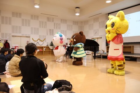 この日のために短大の食物栄養学科・幼児教育学科・生活デザイン総合学科の学生がそれぞれの学びを生かし、歌や演奏、絵本の読み聞かせなど、さまざまなプログラムを企画・準備しました。今年は、子どもたちにもわかりやすくアレルギーについて伝えるために劇を行い、帰りには毎年大人気の、乳・小麦・卵を使用しないアレルギー対応の手作りお菓子をプレゼント。来校されたみなさまに楽しんでいただくことができました。