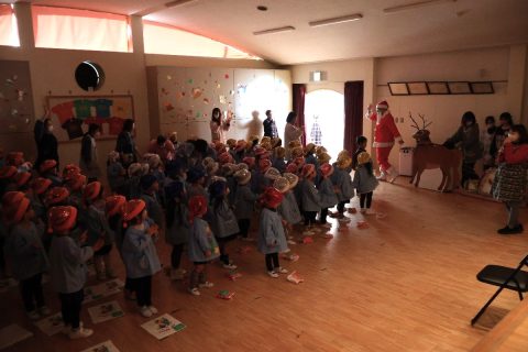 今年は残念ながらお休みの子が多く、クリスマス会でサンタさんに会えなかった子のために、別の日にもサンタさんが幼稚園に来てくれたそうです。みんなのおうちにもサンタさんがやってくるかな?いい子に待っててね。