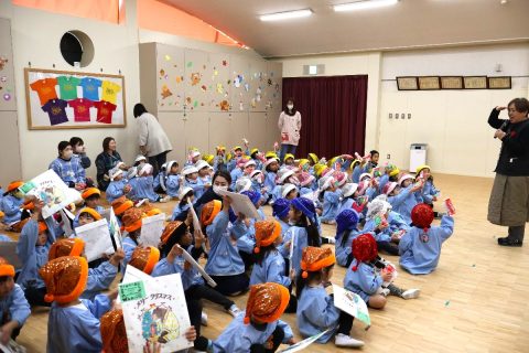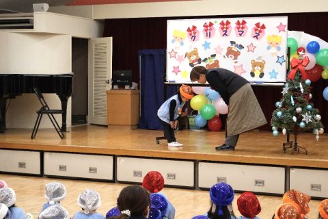 12月12日(金)、愛知学泉短期大学附属幼稚園でクリスマス会が行われました。子どもたちは元気いっぱい!サンタさんに質問をしたり、ひとりひとりにプレゼントを手渡してもらったりと、にこにこ笑顔が広がりました。サンタさんが帰った後は、毎日すてきなあいさつをしてくれる園児さんにお手本を見せてもらいました。