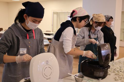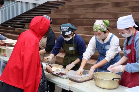 12月20日(土)、愛知学泉大学(岡崎キャンパス)を会場に、「長瀬冬まつり(餅つき大会)」が開催されました。本イベントは、長瀬冬まつり実行委員会が主催し、安城学園が提唱する「事前復興まちづくり」の一環として、大学の敷地や施設を地域住民の皆様に開放して行われたものです。