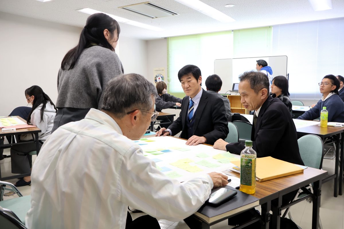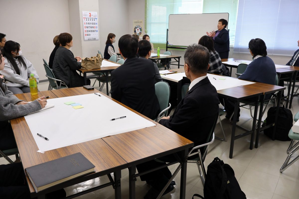 特に今回は、具体的な事例や教訓に触れるだけでなく、AIを活用した学園防災機能の向上や、地域との連携方法について検討を行う実践的な研修となりました。研修中、参加者は寺部曉理事長の掲げる「私たちの仕事はまちづくり」という理念を再確認し、平時からの地域との連携を通じた「事前復興まちづくり」の重要性を共有しました。全体ワークショップでは、安城学園版防災BCP(業務継続計画)として、「発災時の初動」「対策本部の設置」「避難所の開設」「教育活動の再開」という4つのフェーズに基づき、学生・生徒・園児の命と学修環境を守るための具体的なアクションプランを検討しました。
